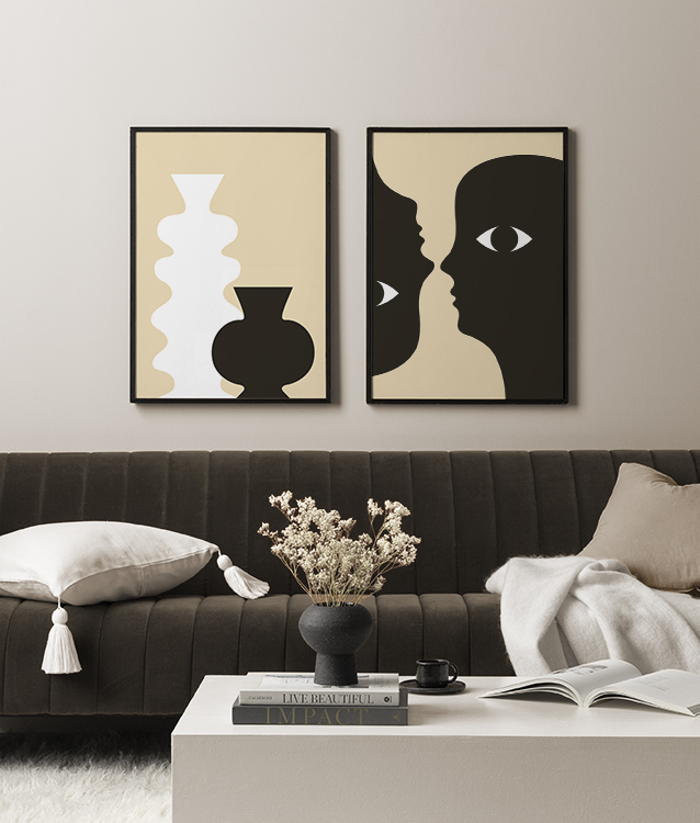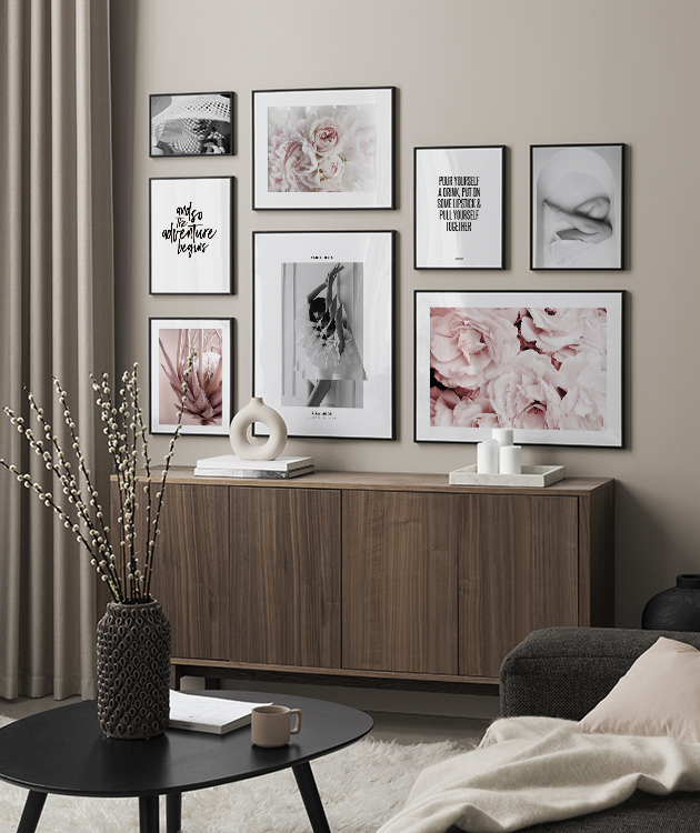 V našem oddělení pro inspiraci si můžete projít různé místnosti a styly a vyhlédnout si obrazovou stěnu, která padne zrovna vám! Objevte inspiraci, jak můžete zkombinovat různé plakáty a vytvořit tak perfektní obrazovou stěnu pro váš domov.