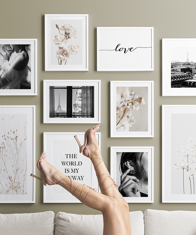 Pro každou obrazovou stěnu si můžete přizpůsobit motiv a zvolit si velikost, rámy, pasparty a jiné příslušenství pro plakáty, aby mohla vzniknout jedinečná kombinace. Volby a možnosti jsou nekonečné - jediná omezení spočívají jenom ve vlastní fantazii. Objevte čistou inspiraci pro vybavení vašeho domova a vytvořte si takovou obrazovou stěnu, která vás vystihne!