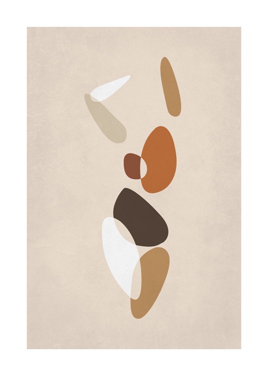 Design Osobní výběr Grafická ilustrace abstraktního těla tvořeného oranžovými a hnědými tvary na béžovém pozadí. Dodejte svému domovu moderní vzhled pomocí grafického tisku. Pověste si ho vedle tisku „Body Shapes No1“ pro dokonalý pár.