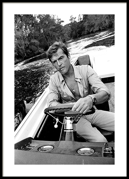 Plakát je vytištěn s bílým okrajem, který pěkně rámuje design, a má zrnitou fotografickou strukturu.