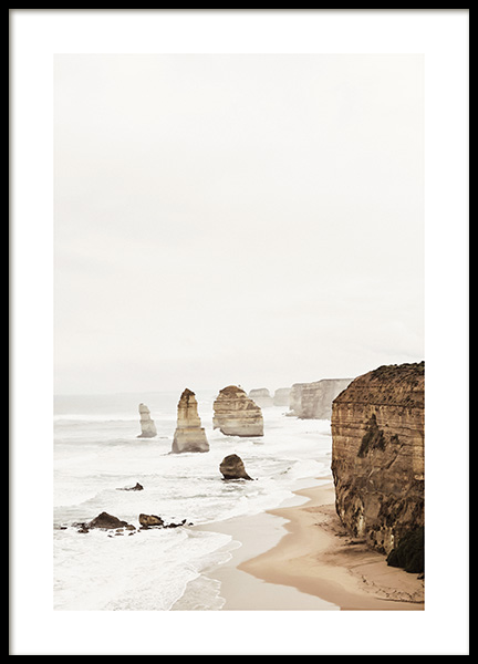 Design Osobní výběr Fotografie pláže s dlouhým útesem a klidným oceánem na pozadí. Příroda nám svou měkkou a neutrální paletou pokaždé vezme dech. Prohlédněte si naši kategorii s přírodními tisky a najděte motivy, které se vám hodí.