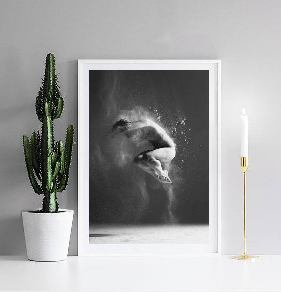 Affisch/poster med foto på en dansare. Vacker svartvit tavla.