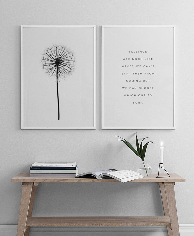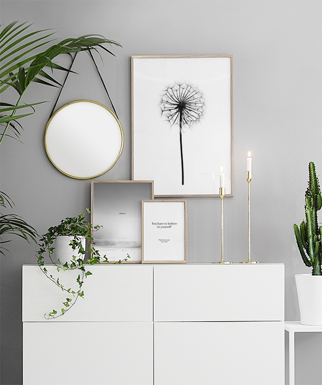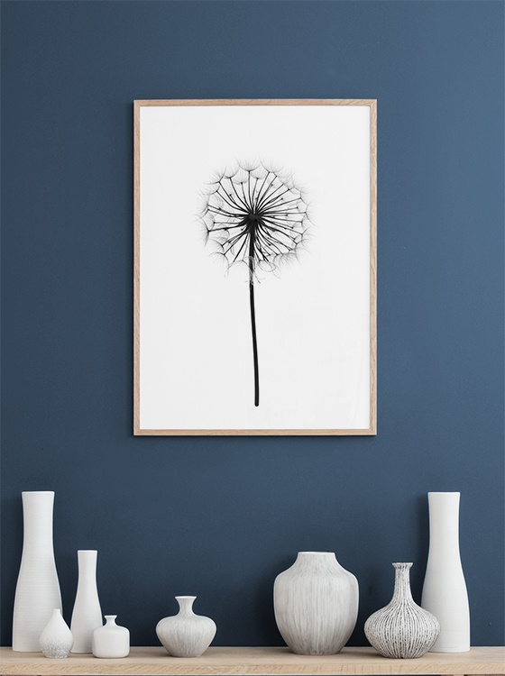 Fin botanisk poster i svartvitt med maskros. Svartvita tavlor.