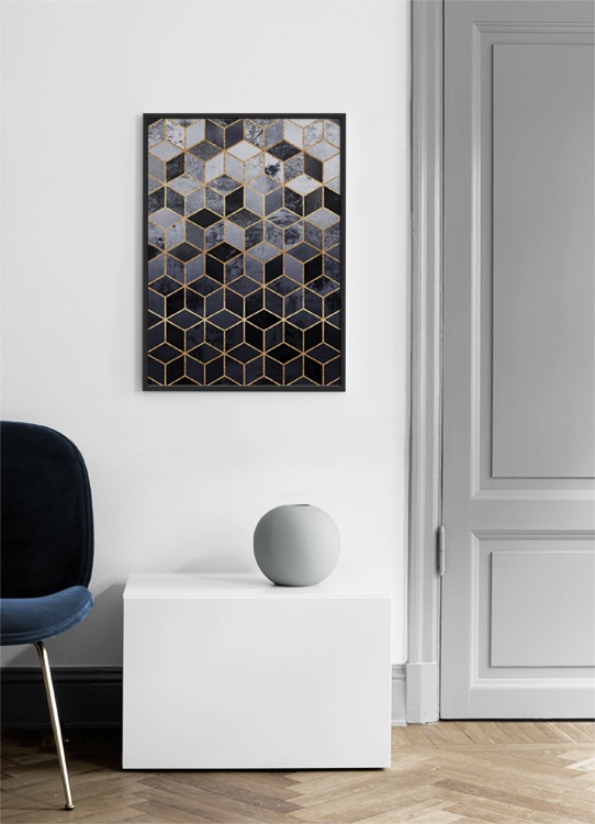 Design Osobní výběr Plakáty s motivem od Elisabeth Fredriksson. Moderní plakáty s elegantním grafickým motivem. Tento plakát s čtvercovým, šedým vzorem a zlatými detaily se perfektně hodí jako dekorace na stěnu u vás doma. Pomocí plakátů doma získáte pocit tepla domova, osobnější charakter, ale i moderní a elegantní ráz. Pokud potřebujete poradit s tím, jak sladit vaše plakáty, podívejte se do kategorie „Inspirace“, kde najdete tipy a nápady na pověšení plakátů.