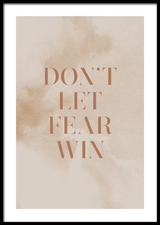 Design Osobní výběr Textový plakát s hnědým citátem „Don't let fear win“ na béžovém pozadí se skvrnitou strukturou. Život je někdy náročný a děsivý, tento tisk vám ale bude připomínat, aby jste se nenechali strachem přemoci a zastavit.