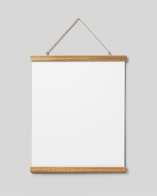 Design Osobní výběr Dubový plakátový závěs s magnety k připevnění. Tento plakátový závěs má inteligentní magnetický design, který drží plakát pevně, aniž by jej poškodil. Pro tisky 40x50 s formátem na výšku a tisky 30x40 s formátem na šířku.