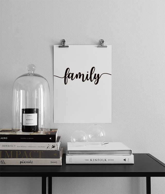 Design Osobní výběr Typografické plakáty jsou horkým trendem a tento plakát s nápisem „Family“ (rodina) napsaným černými písmy na bílém pozadí je dokonalým příkladem této módní vlny. Plakát, který bude vypadat úžasně v kombinaci s našimi dalšími plakáty a který Vám bude neustále připomínat Vaše blízké. Všechny plakáty s citáty naleznete v kategorii Typografie a Citáty.
