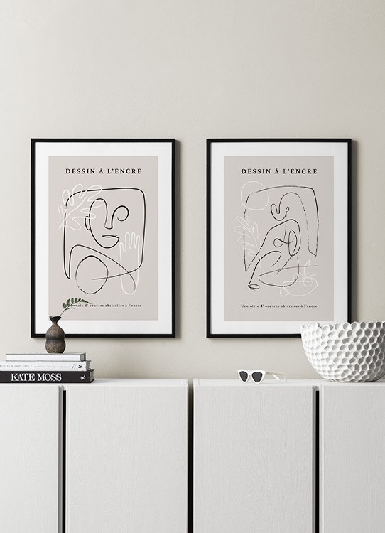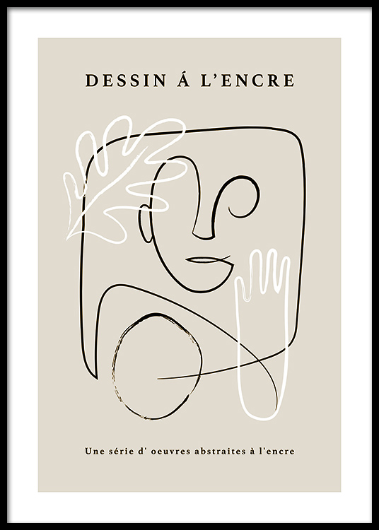 Od 149,70 KčGrafická ilustrace s černým abstraktním motivem tváře, ze stran obklopené bílou rukou a bílým listem, na béžovém pozadí s černým textem v horní a dolní části. Pověste si tento tisk vedle díla 'French Sketch No2' pro dokonalý pár!