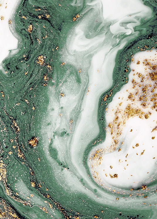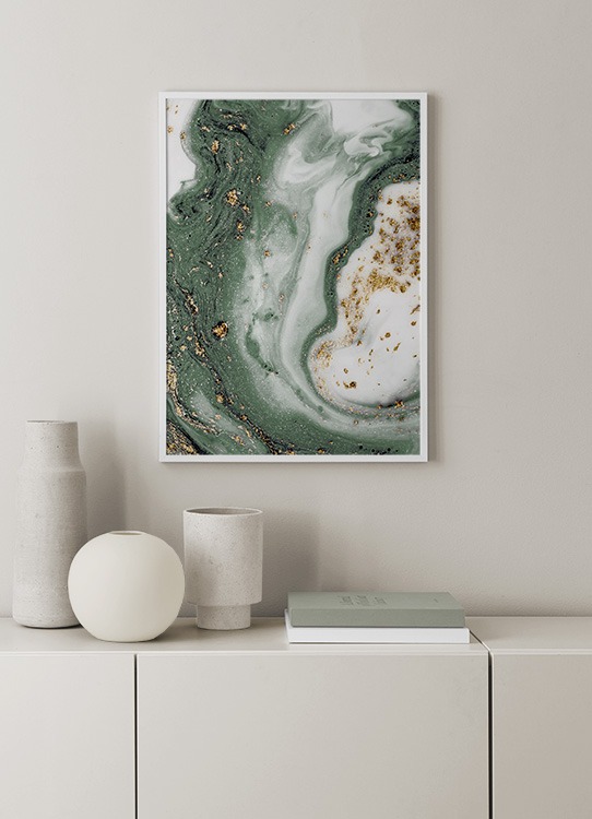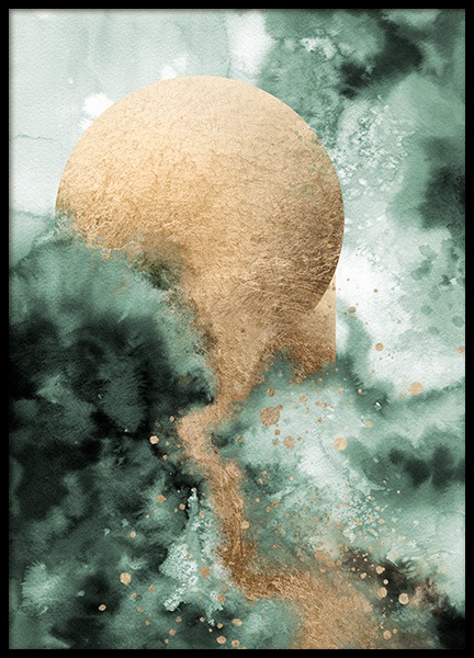 Abstraktní tisk s vlnkami v zelených, bílých a zlatých tónech. Uvolněte se a dovolte své kreativitě na chvilku vystoupit z komfortní zóny. Abstraktní umění nikdy nevyjde z módy a tento tisk není výjimkou.
