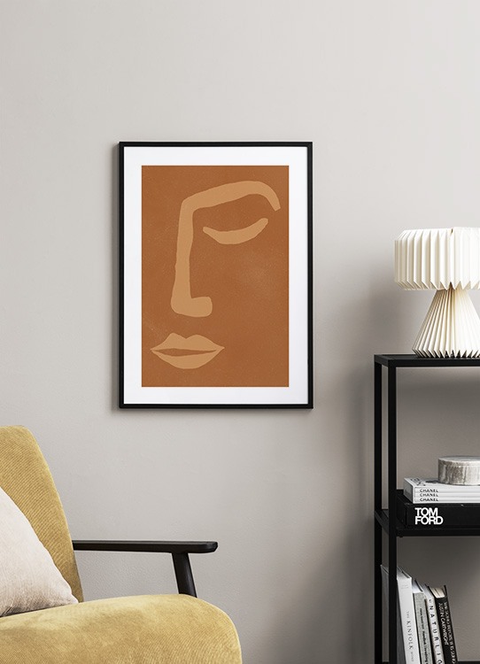 Od 149,70 KčAbstraktní ilustrace obličeje namalovaná výraznými, béžovými liniemi na hnědém pozadí s malými skvrnami. Přidáním teplých, zemitých tónů si doma vytvoříte pocit klidu, který se skvěle hodí do obývacího pokoje.