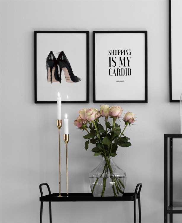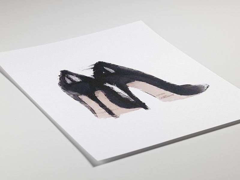 Fashion poster med illustration. Print med trendiga, svarta klackskor.