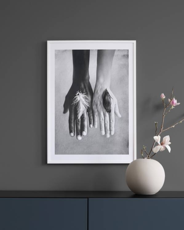 Design Osobní výběr Plakát Fidelity vytvořen Tove Frank pro studio Love Warriors. Fotografie s motivem dvou černobílých rukou symbolizující hledání správné životní cesty. Životní cesta je podle Love Warriors vždy individuální a neměla by být nikomu vnucována. Každý má sílu a schopnost najít svoji vlastní cestu. Někdy se však musíme zastavit a naslouchat svému nitru, abychom se neztratili. Breath next to me. And I capture a piece of your sol along with mine - Markit. Zde najdete další umělecké fotografie od Tove Frank. Plakát je opatřen paspartou, která motiv pěkně lemuje.
