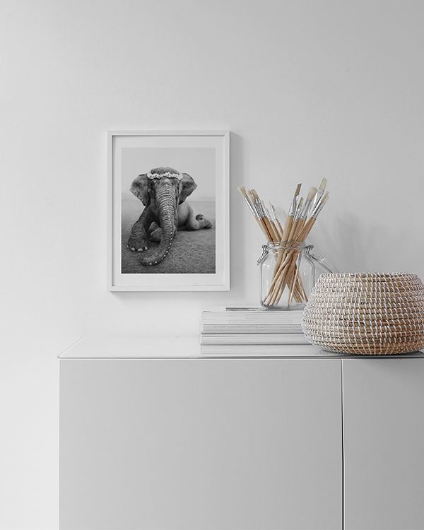 Design Osobní výběr Plakát Sweetest Adele z dílny Love Warriors a série Adorable Friends je krásná, černobílá fotografie slona Adele s květinovým věncem. Adele se od focení v Bali před několika lety stala součástí skupiny Love Warriors. Během tohoto focení všechny dojala intimita mezi ní a jejím majitelem, který často spí po jejím boku. Dříve byla Adele jedním ze zneužívaných slonů v asijském cestovním průmyslu. Byla ale zachráněna neziskovou organizací a dnes je o ní postaráno v záchranném centrum. Plakát Sweetest Adele navrhla dílna Love Warriors ve spolupráci s talentovanou balinéskou fotografkou Andika Dana Pratama. Plakát je opatřen paspartou, která fotografii pěkně rámuje.
