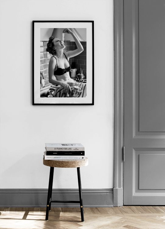 Od 128,80 KčČernobílá fotografie ženy v podprsence, která sedí v kuchyni a jí těstoviny. Díky kuchyňským tiskům se z vaší kuchyně stane prostor, ve kterém bude příjemnější pobývat. Černobílý styl dává tisku retro dojem.