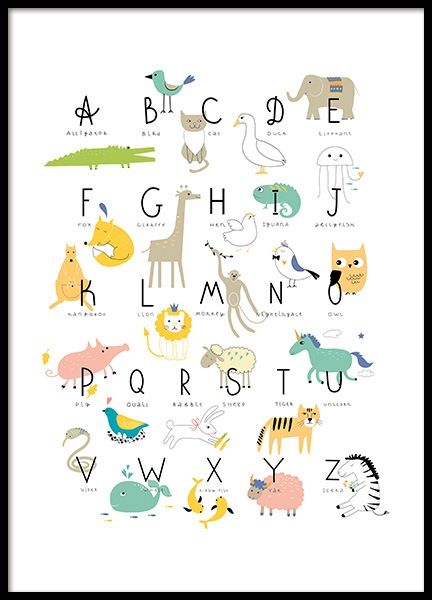 Naše abecední plakáty najdete v různých stylech i barvách. Dovolte vašim nejmenším, aby si zvolili svůj oblíbený abecední plakát. Tím, že necháte vaše dítě, aby si samo vybralo z našich abecedních plakátů, podnítíte jeho zájem o jazyky a písmena.