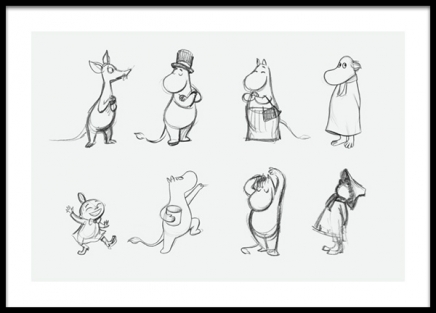 Jestli jsi opravdový fanoušek mumínků, tak jsou tyto tisky pro vás to pravé. Buď si koupíte celou kolekci s motivy mumínků a sestavíte si nástěnnou galerii plnou těchto roztomilých tvorů, nebo si pořídíte jeden nebo dva kousky, kterými do svého interiéru přidáte unikátní nádech.