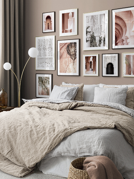 Palmy ve větru zrcadlící v hladině bazénu nás jen povzbuzují k tomu, abychom se vydali na cesty. Tato kolekce zvýrazňuje kouzlo a tajemnost tohoto krásného místa. Stěny pokryté pastelovými mozaikami, obloukovité klenby, pozlacené kopule a ručně propracované detaily – do toho všeho jsme se zamilovali na první pohled. Toto tajné místo nás svou dlouhou historií a tradicemi uvádí do úžasu. V této kolekci, která je zaměřená na starověkou architekturu, se tým Desenio Design Studio snažil zachytit lidský odkaz Marrákeše.