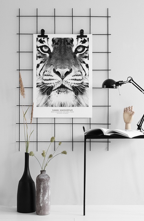 Design Osobní výběr Černobílá fotografie tygra, která vypadá krásně samostatně zarámovaná ve stylovém rámečku, ale i jako součást nástěnné koláže. Tuto fotografii můžete zkombinovat s dalšími fotografiemi volně žijících zvířat z naší kategorie Zvířata a Fotografie. Máme spoustu úžasných plakátů zvířat a přírody, jak v barevném, tak černobílém provedení. Vytvořte jejich kombinací nádhernou nástěnnou koláž! Plakát má okraj, který celý výjev elegantně ohraničuje.