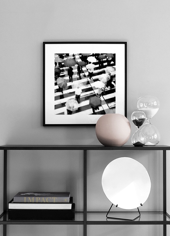 Umbrellas on Crosswalk Plakát ve skupině Plakáty / Černobílé na Desenio AB (11678)